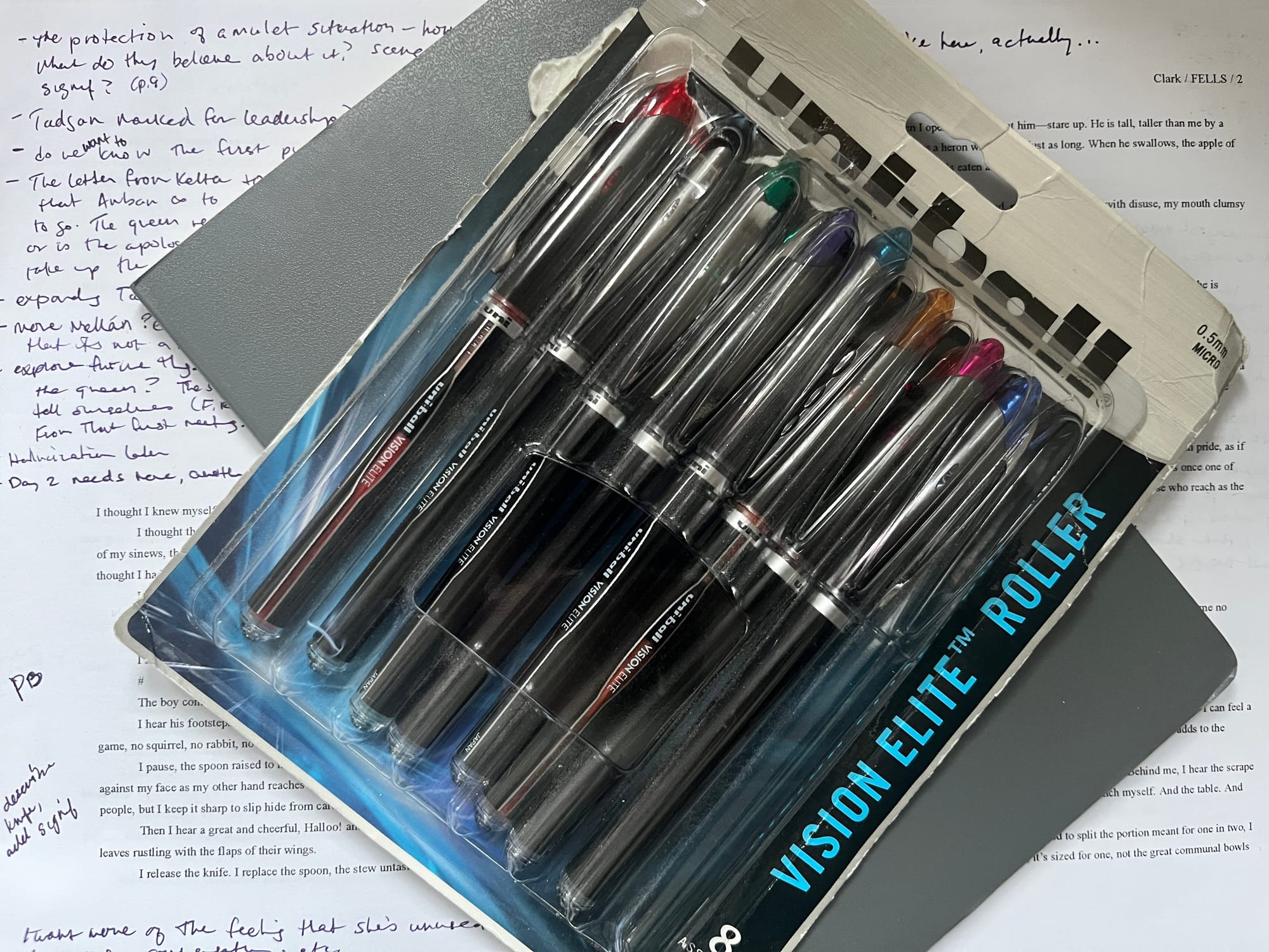 So I printed it out and took it with me on a little writing retreat. The first day, I read through the whole thing, taking copious notes. “Move this here” and “Expand this section” and “This is interesting, maybe there is more here?”—stuff like that. On the readthrough, I could see and feel where the weaknesses were—sections that felt too long in comparison to others, or too short. Moments glossed over too quickly.