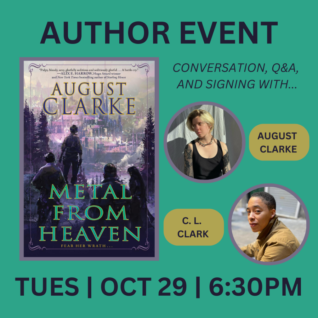 I try to be a man of my word, and I am--just not always the fastest man of my word. Which is to say, I have finally finished editing the transcript for the event that I did in October with august clarke when his book Metal from Heaven came out. I have described it as a lesbian biker gang revenge story meets radium girls meets Upton Sinclair's The Jungle. If my previous exhortations haven't convinced you to pick up the book, hopefully our conversation will.